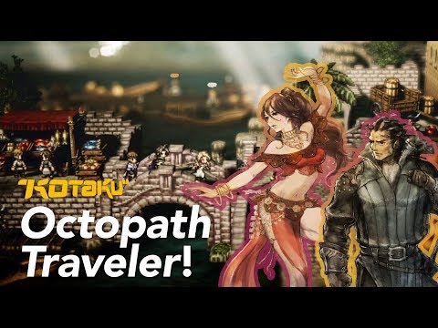 Octopath Traveler is a Japanese role-playing game with eight characters. Each of them has their own origin story. Each of those origin stories ends with that character deciding to leave their home and travel the world. You start by picking one character. Then you encounter all of the others during your journey. They each have traits that help one another out in different ways. You are free to mix and match party members to accommodate battle situations.